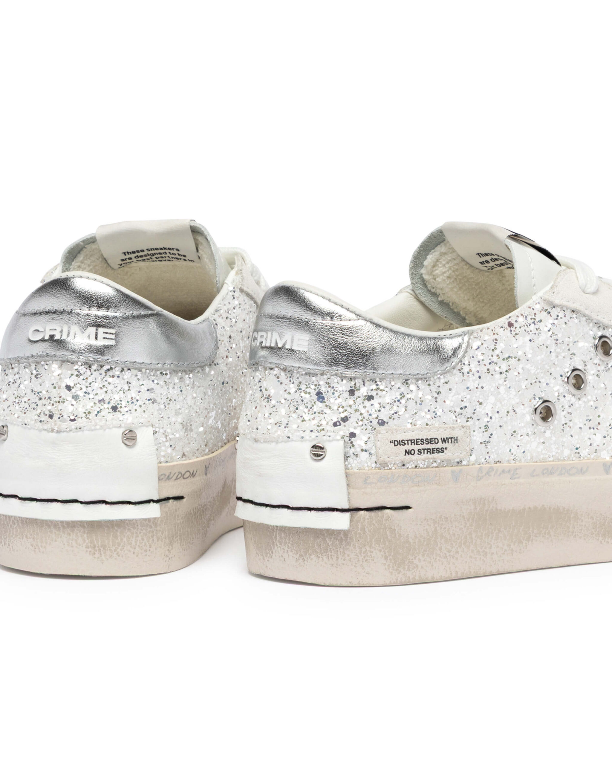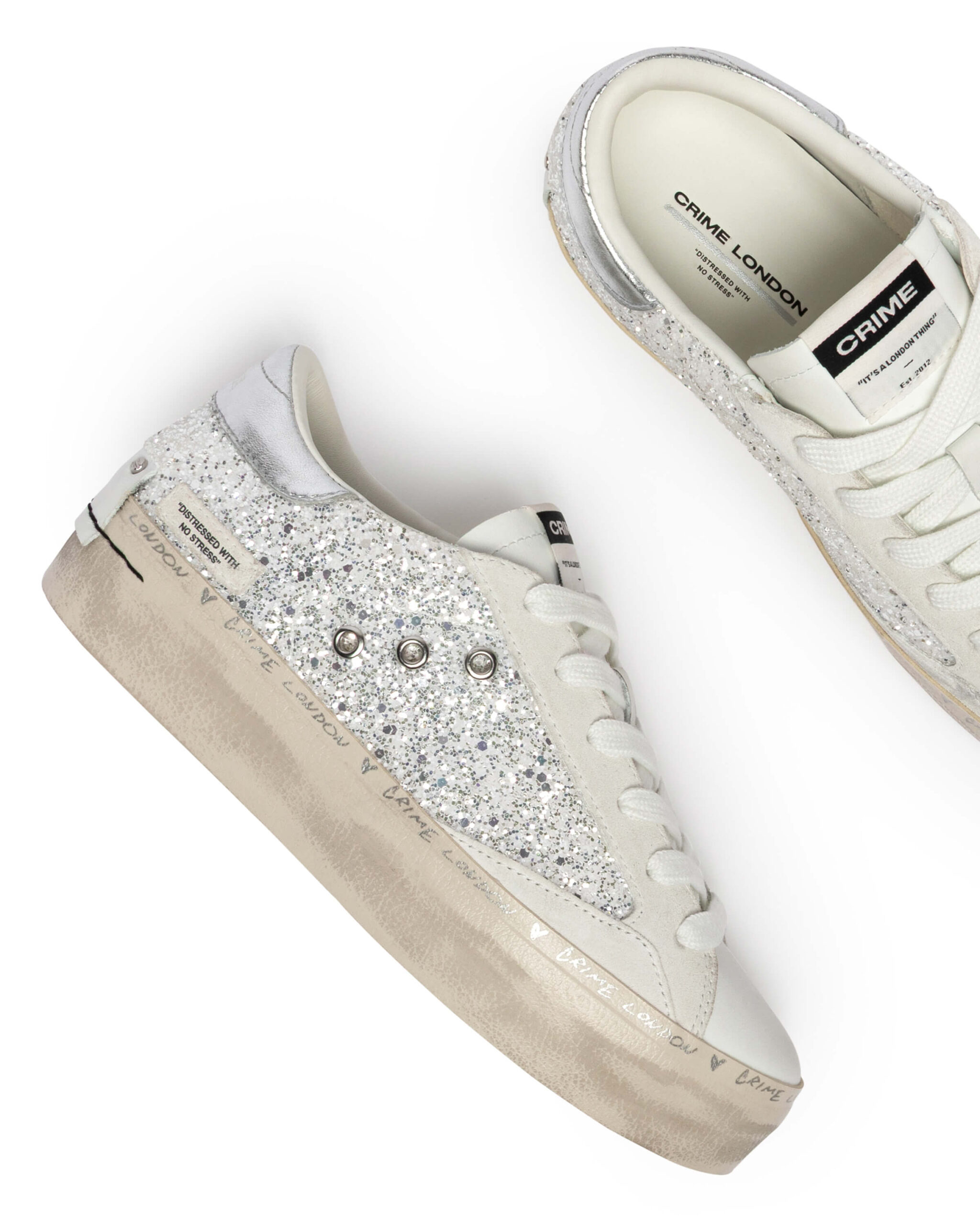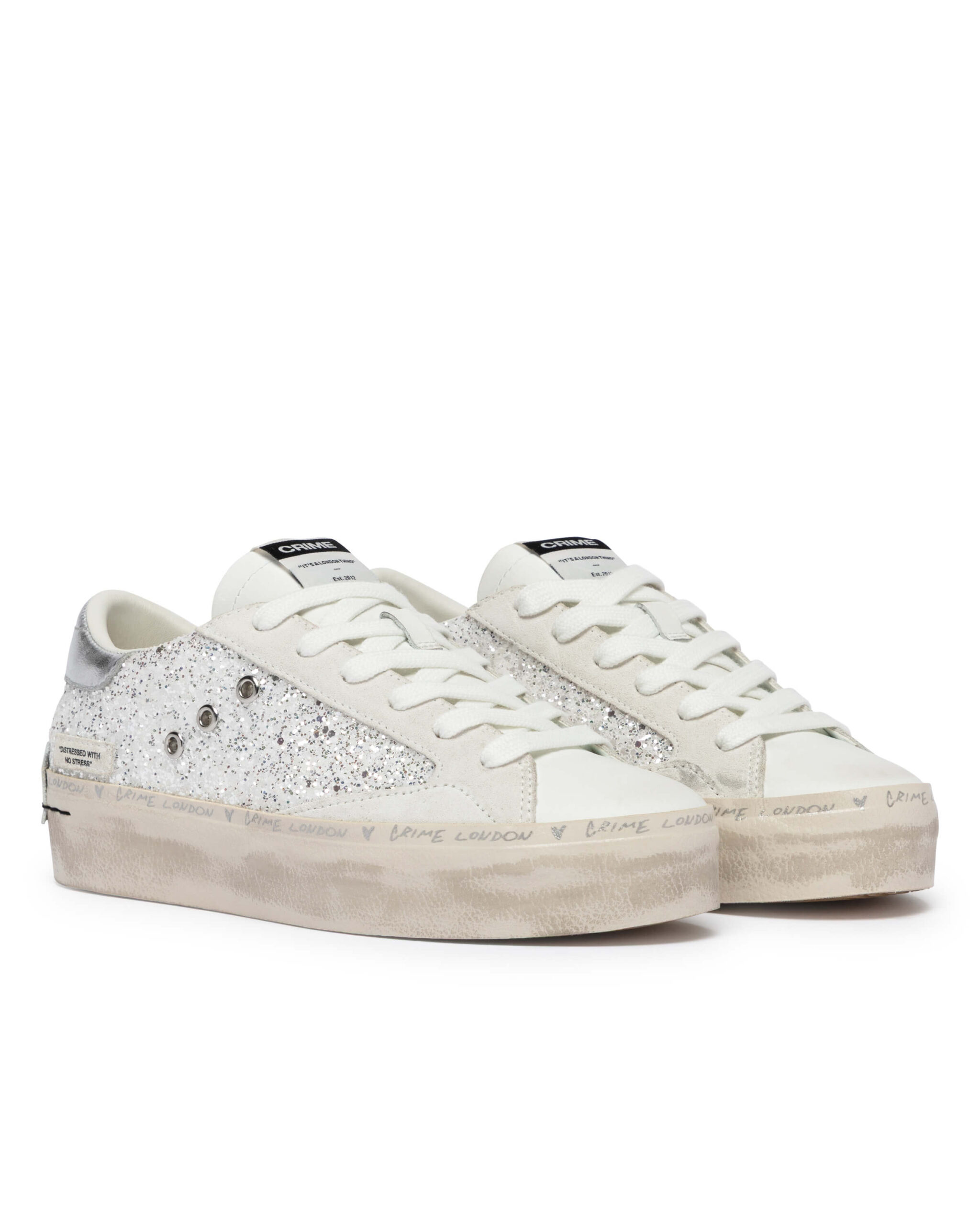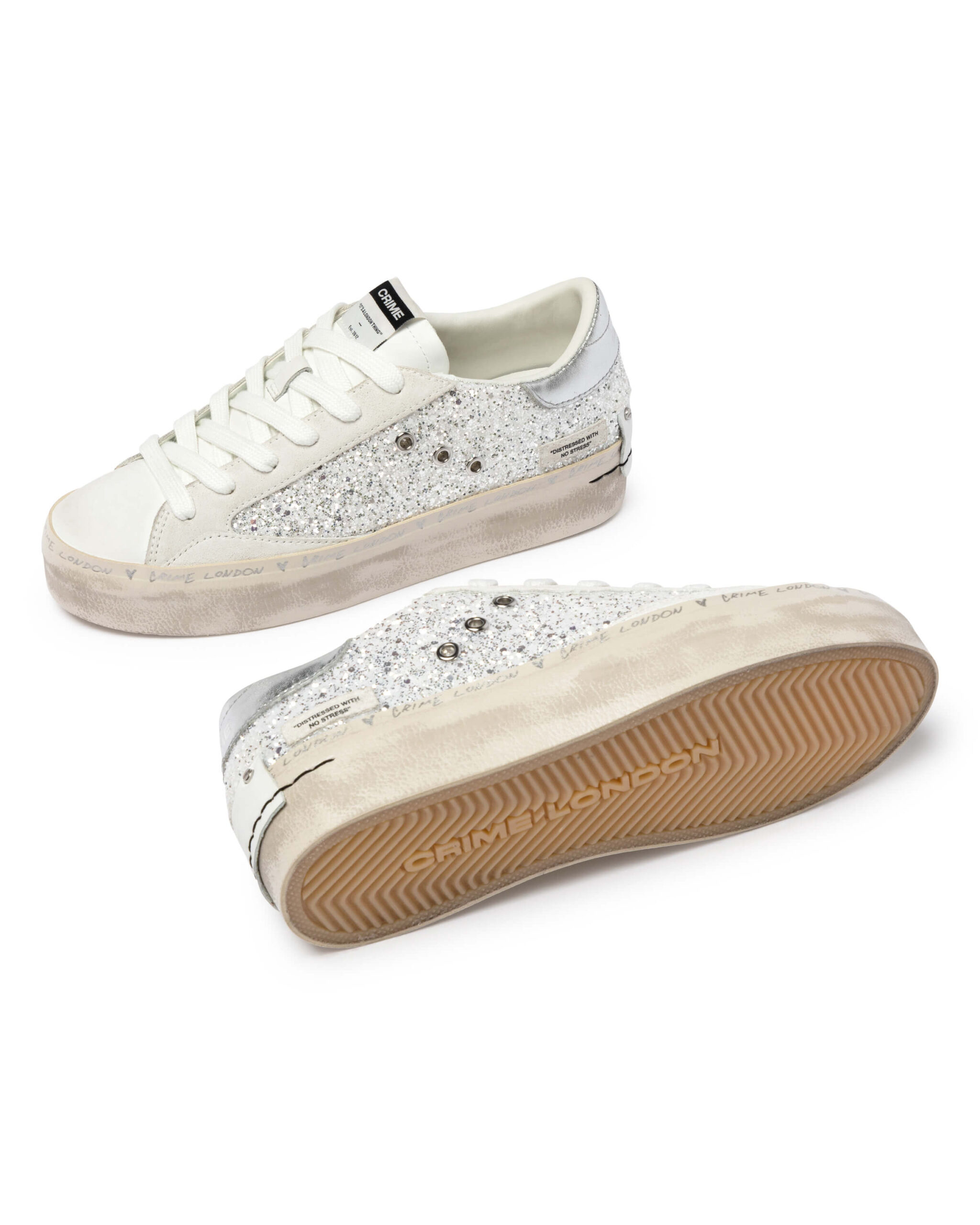 "DISTRESSED WITH NO STRESS" CRIME LONDONのブランド発祥の背景にあったアイコンモデル。 『DISTRESSED』。 そのコレクションのNEW、アップデートした厚底のコレクション。 どんなスタイルにも合うデイリースニーカーを作ろうというアイデアから誕生したモデル。使用したバルカナイズソールと2cmのレザーカップインソールを採用。加えて常に最高級のイタリアンレザー素材を使用。ヒールカップの クラシックなレザーに2つのスタッズディティールはブランドのアイコンであり、靴のウィズサイドにある「マッドガード」は歩行中に靴の最も繊細な部分を強化しデザイン性に落とし込んでおります。